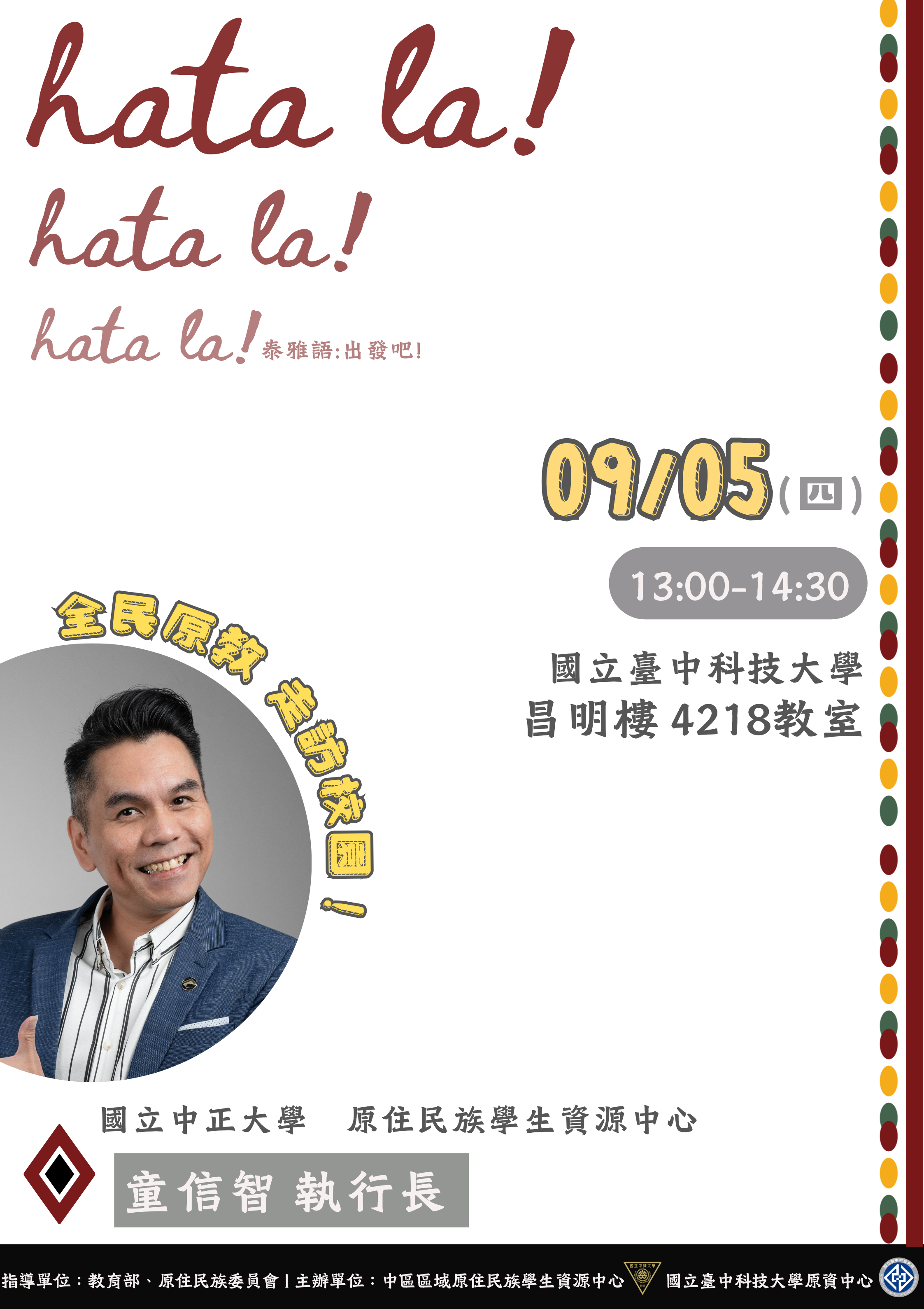 若有任何疑問,請逕洽國立臺中科技大學原住民族學生資源中心阿尤姿小姐04-22195254,國立中興大學中區區域原住民族學生資源中心王小姐04-2284-0237轉23。