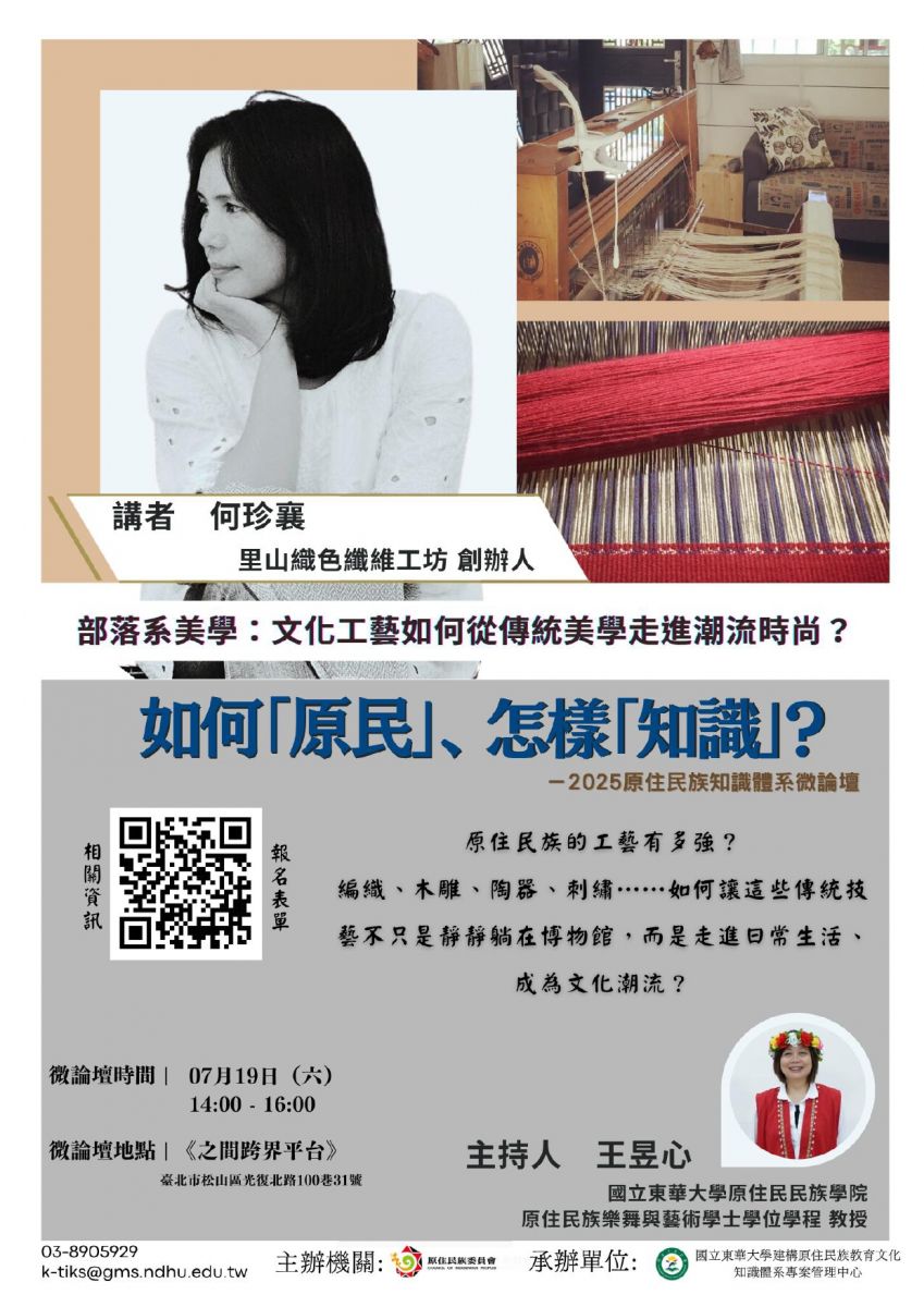 下半年微論壇,我們將持續集結文化實踐者、學術研究者與青年世代的多元觀點,從手中的編織、傳說裡的神話、奔跑的腳步與指尖的科技,持續探索臺灣原住民族知識的樣貌與未來可能。