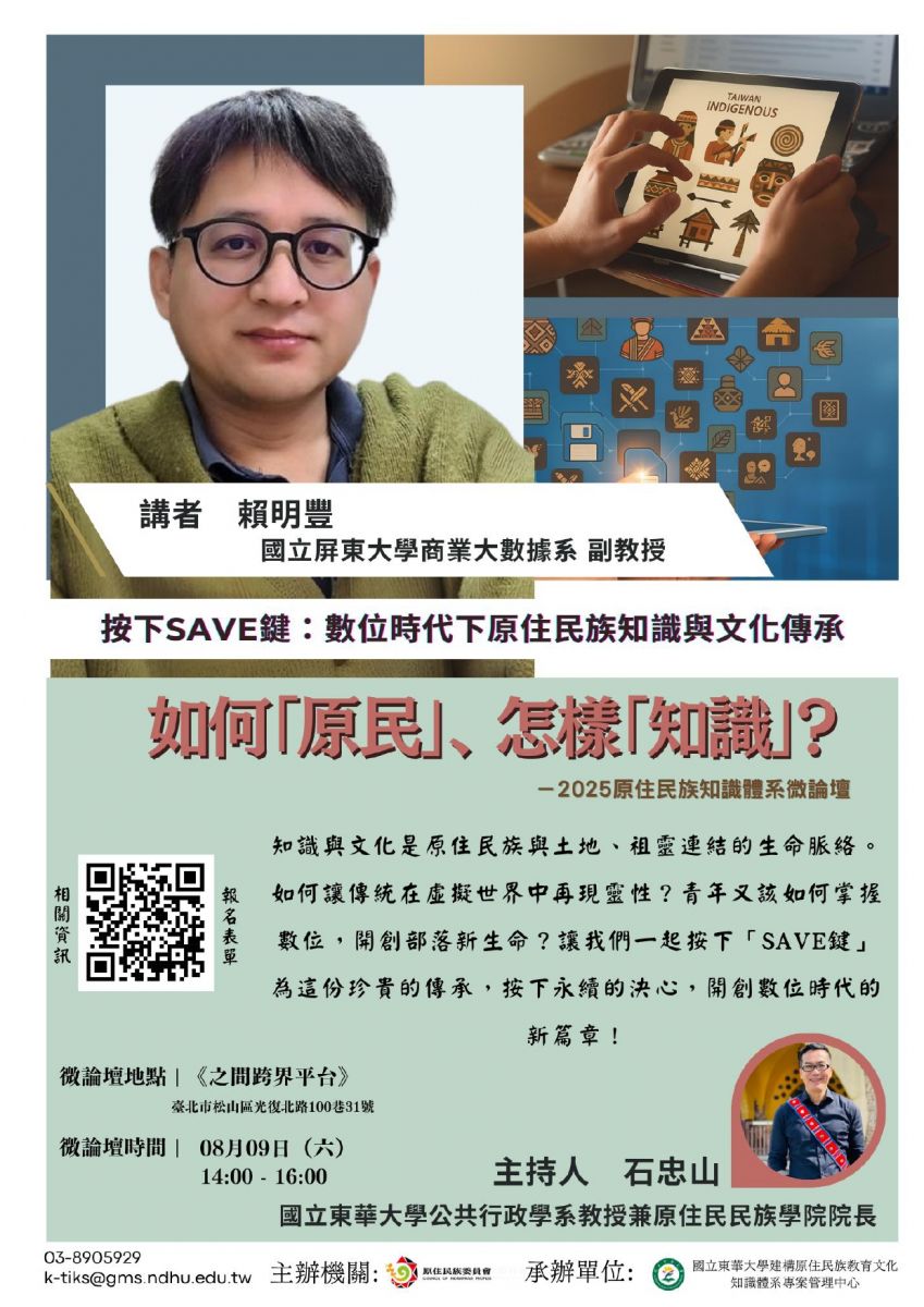 【主題】 《按下SAVE鍵:數位時代下原住民族知識與文化傳承》